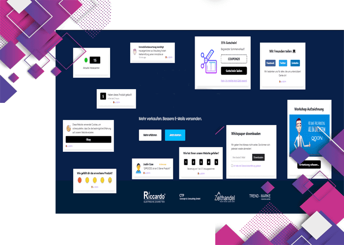 Time to Market und Speed of Implementation sind beides Ansätze, welche bei der Vermarktung neuer Produkte und Dienstleistungen extrem wichtig sind. Kampagnen müssen schnell aufgesetzt werden und die Konversion muss stimmen. Änderungen am Funnel, müssen nach einem A/B-Test problemlos umsetzbar sein. Das moderate Preismodell verbunden mit Enterprise-Features, welche bei alternativen Lösungen, viel Geld kosten, machen QOON für viele neue Unternehmen der Digitalwirtschaft sehr attraktiv. Startups lieben QOON!
